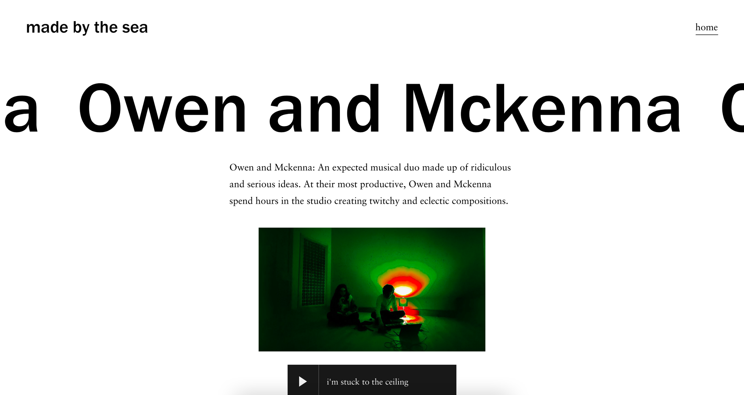 I learned a lot of useful information during the website design aspect of my project. Before starting this project I was familiar with Logic Pro X, a recording software, but I was completly unfamiliar with Adobe Premiere or Squarespace. After becoming familiar with squarespace and the fundamentals of web design, I felt that I needed to make one final extention to my project. I was very pleased with the fact that I was able to learn new ways to display art on a digital platform, but I couldn't help but think my fellow creators in the artistic community. It seemed necessary to use this platform to not only display my own work, but also the work of my talented peers. The final edition of my site is now called madebythesea.org, and includes works of multiple artists accross different mediums.